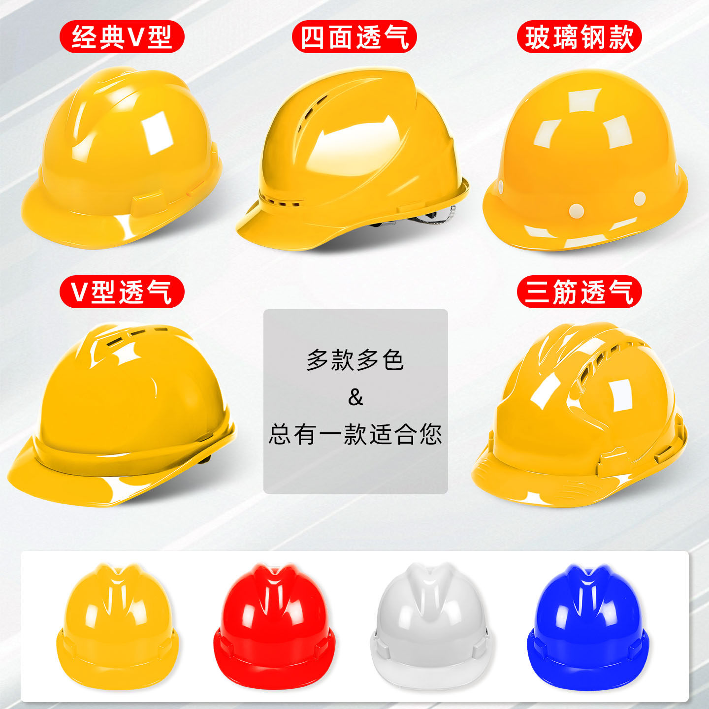 开元玻璃钢安全帽透气多功能防砸防撞工地建筑防护加厚劳保头盔
