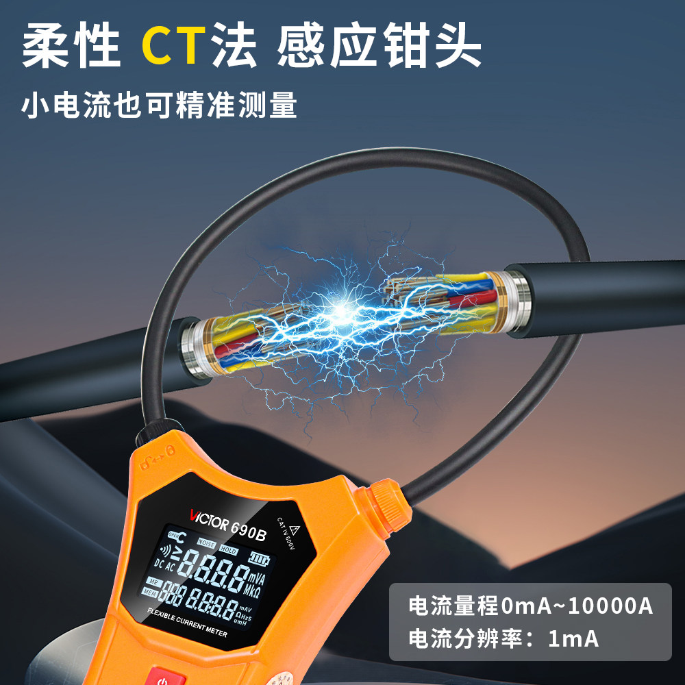 淘宝胜利柔性线圈大电流漏电流钳表VC690B漏电流测试交直流电压钳形表