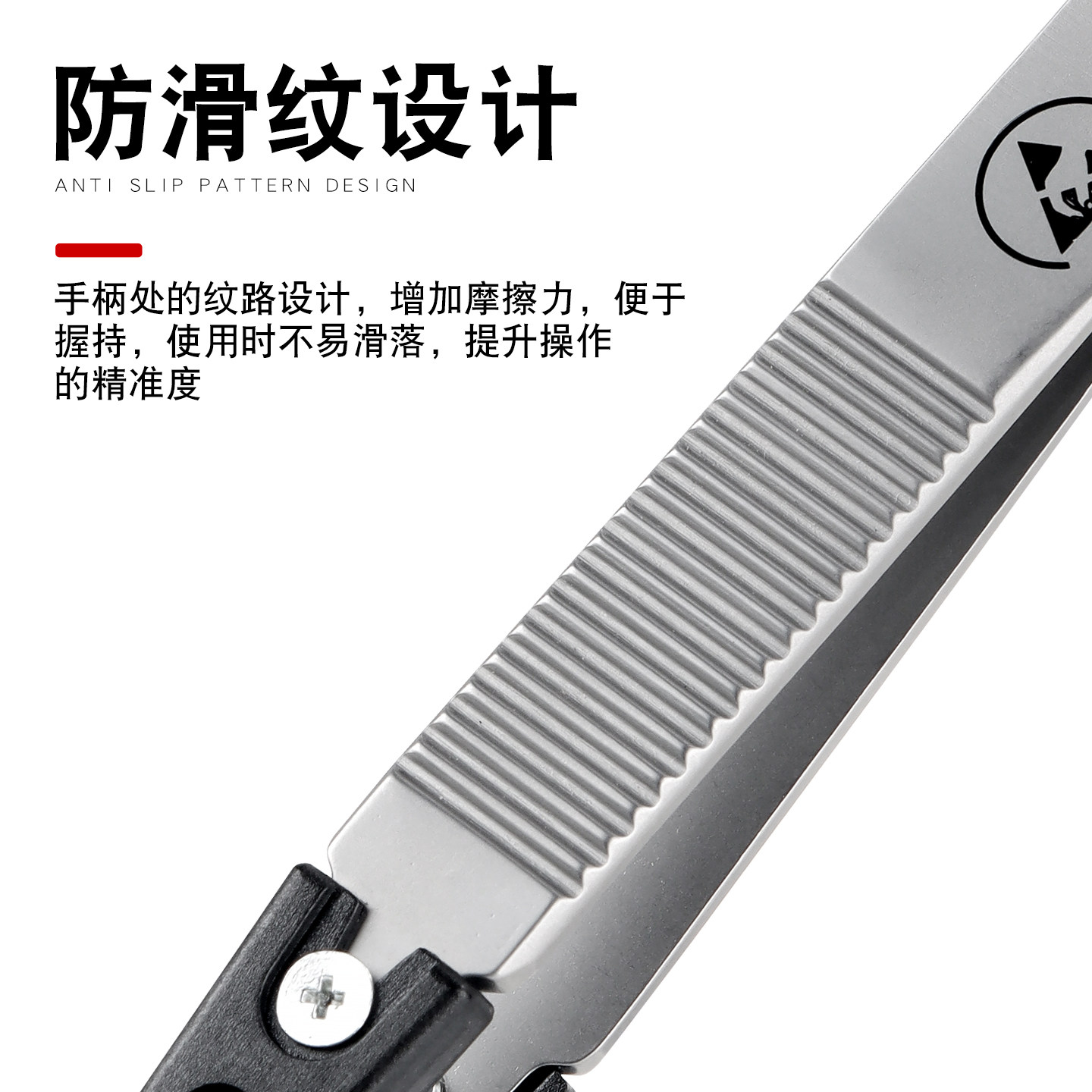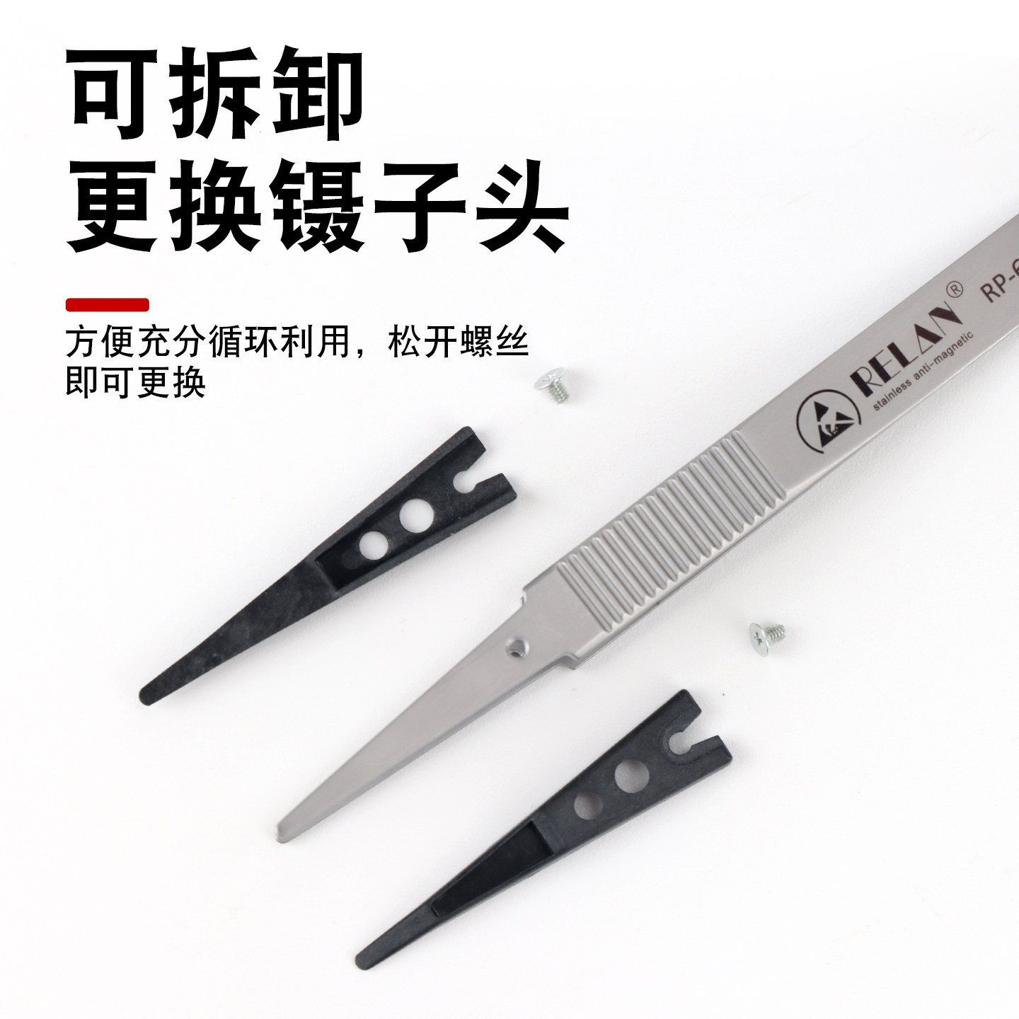 淘宝RELAN 新款ESD防静电无磁碳纤维可换头镊子不锈钢耐高温尖弯扁头