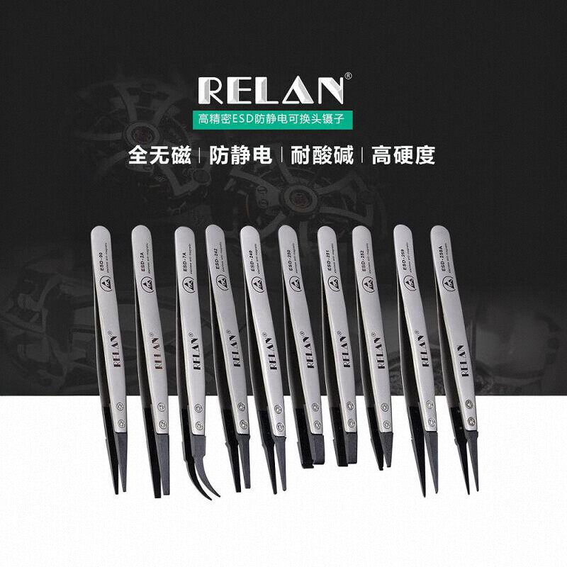 RELAN新款ESD防静电无磁碳纤维可换头镊子,采用高品质不锈钢与碳纤维复合材料打造,兼具轻便与耐用。其独特的ESD防静电设计,有效避免静电损伤精密电子元件,适用于半导体、精密仪器维修等敏感作业环境。无磁特性确保在磁场敏感场景中安全使用。镊头提供尖头、弯头、扁头等多种可更换选项,满足不同操作需求。耐高温性能优异,可在高温环境下稳定工作。人体工学设计握感舒适,长时间使用不易疲劳。整体结构精密,夹持精准,是电子制造、实验室及精密装配领域的理想工具。