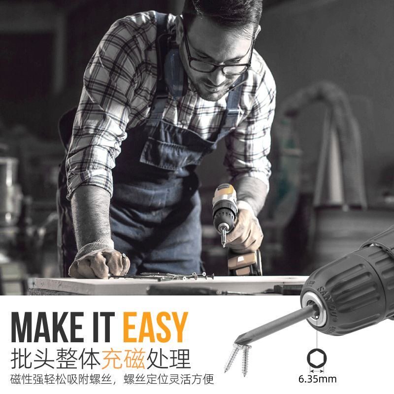 日式设计内六角批头电动套装高硬度十字梅花强磁手电钻棘轮螺丝刀