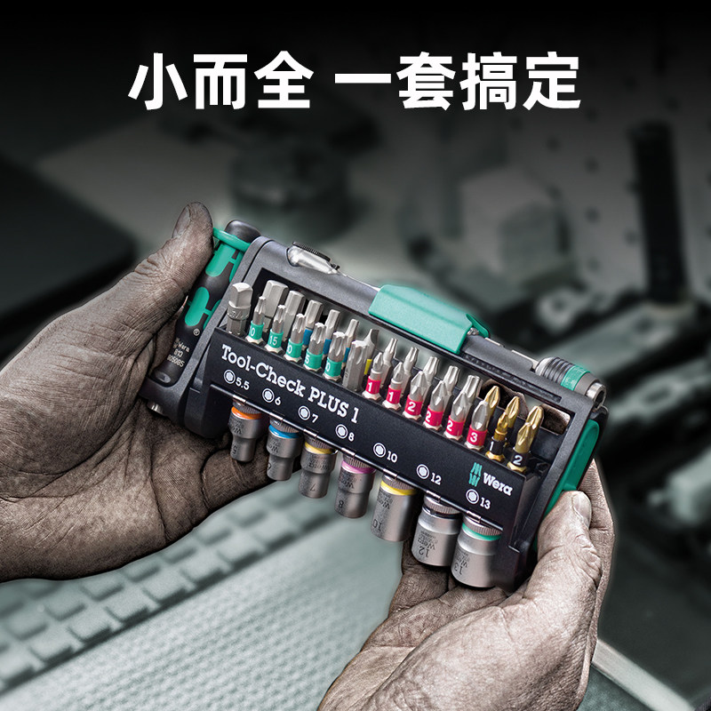 维拉迷你家用套装新版德国Wera ToolCheck棘轮扳手螺丝刀批头便携套装,集高效与便捷于一体。采用德国Wera原厂高品质批头,硬度高、耐磨损,适配多种螺丝类型。创新ToolCheck设计,内置磁性批头仓,开合顺滑,取用一目了然。搭配精密棘轮扳手,正反转切换顺畅,狭小空间操作更省力。整体结构紧凑,收纳有序,轻松放入工具箱或随身包中,是家庭维修、家具组装、电子设备维护的理想之选。工艺精湛,握感舒适,兼顾专业性与日常实用性,让每一次拧紧都精准高效。
