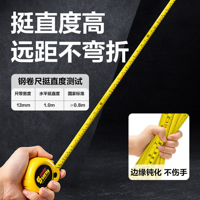 得力家用自锁10米工业级测量卷尺,专为精准测量设计,融合耐用性与多功能性。采用高强度钢带,刻度清晰耐磨,确保长期使用中精度不衰减。配备自锁机制,测量后可自动锁定尺带,方便读数与记录,松手即回弹,操作便捷。内置精密滑轮结构,收放顺畅,减少卡顿,延长使用寿命。外壳采用工程塑料与橡胶包边,抗摔耐冲击,适应家庭装修、木工、建筑等多种场景。10米长量程满足大范围测量需求,卷尺头部带磁性,可吸附金属表面,提升作业效率。整体设计兼顾工业级强度与家用便捷,是精准测量的可靠之选。