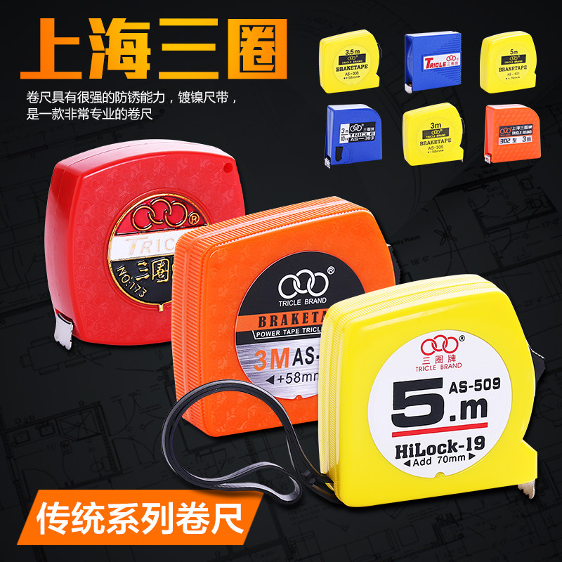 上海三圈 不锈钢外壳小钢卷尺1米2米3m5米盒尺木工高防水防锈精准