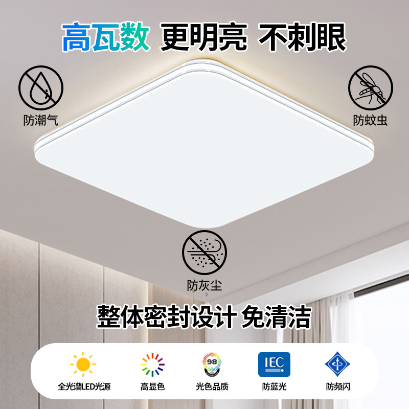 LED三防超薄吸顶灯圆形家用客厅卧室防尘护眼超亮卫生间全光谱