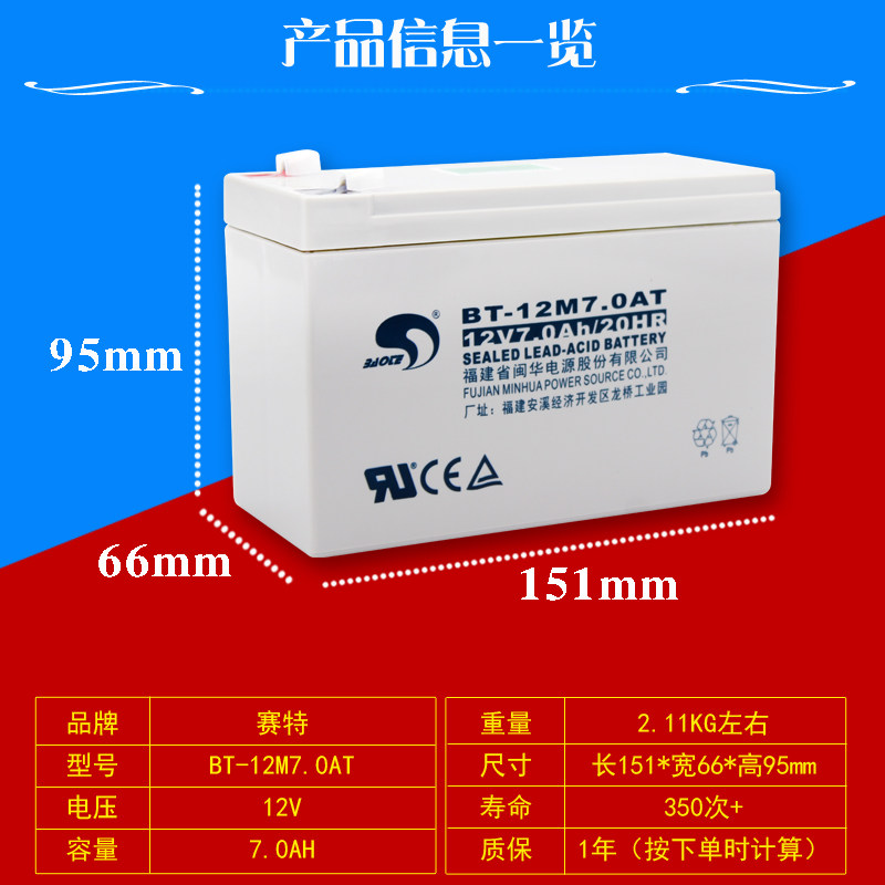 淘宝全新正品赛特BT-12M7AT/12V7AH/20HR蓄电池电梯报警消防主机电瓶