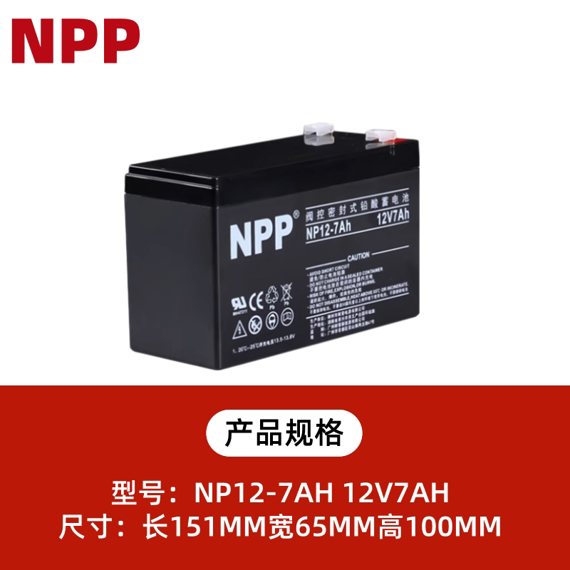 耐普蓄电池NPP12-7Ah电梯12V5 9 17 20 24 38 65 ah消防UPS直流屏