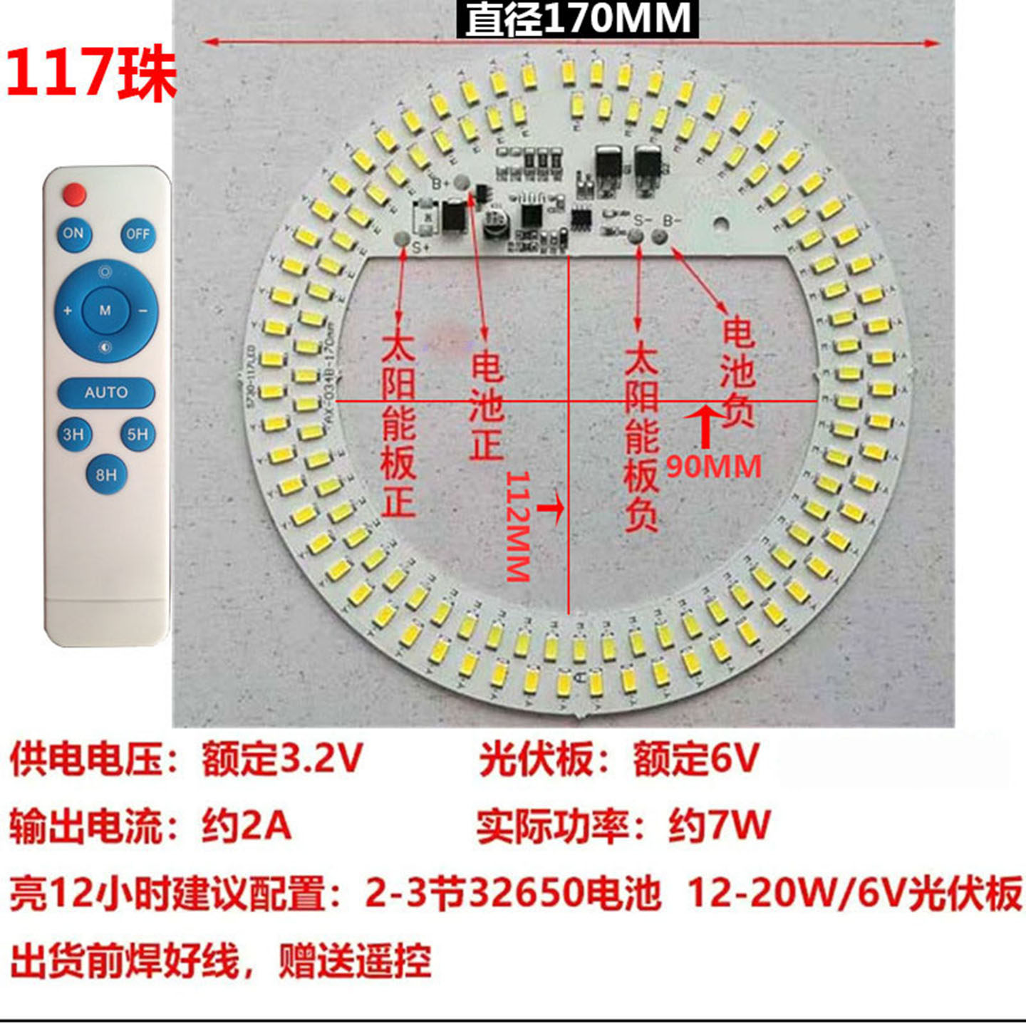 太阳能路灯光源板用3.2V电池6V光伏板农村路灯维修组装改装配件