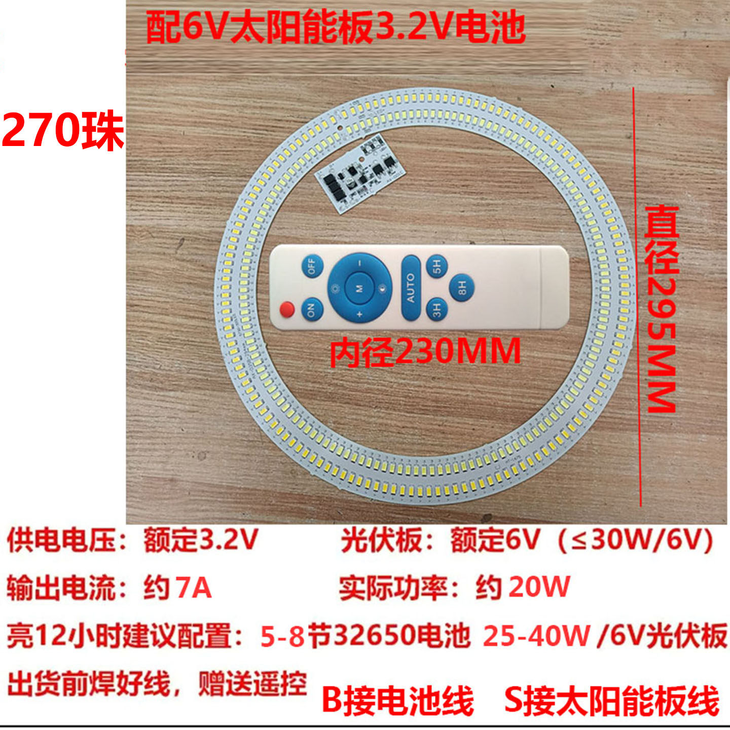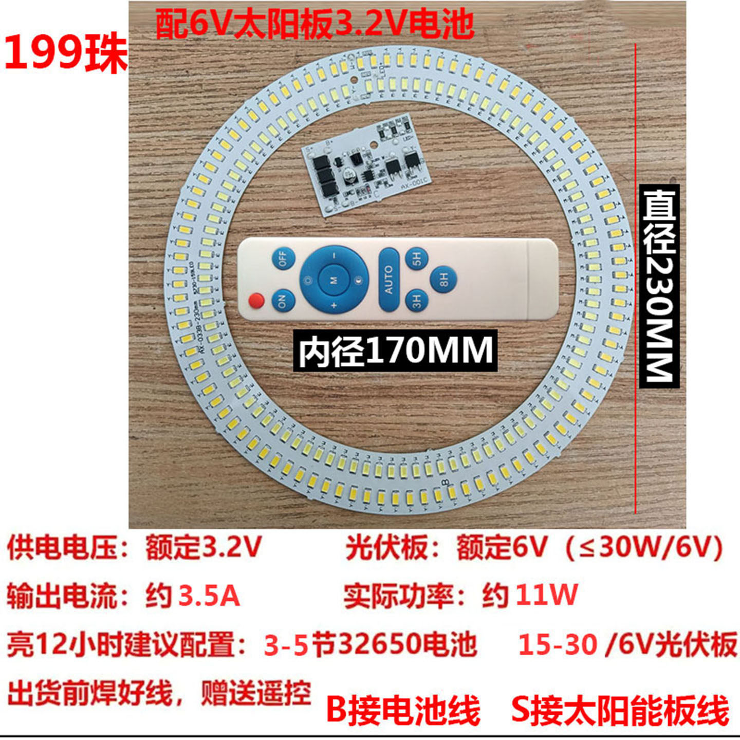 太阳能球泡光源板接3.2V电池配6V光伏板改装柱头灯吸顶灯组装配件