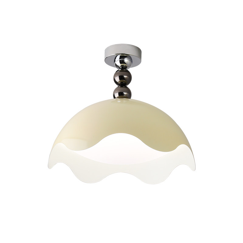 这款法式蛋壳灯融合了奶油色调与少女风设计,灵感源自孟菲斯风格与中古美学,呈现出独特的高级感。柔和的蛋壳白灯罩搭配复古金属边框,营造出温馨浪漫的卧室氛围,完美契合ins风家居格调。吸顶式设计节省空间,光线柔和不刺眼,适合打造慵懒治愈的休憩角落。无论是搭配奶油系软装,还是点缀中古家具,都能为房间增添一抹艺术气息。细节精致,工艺考究,既是照明灯具,也是提升空间质感的点睛之笔,让卧室瞬间升级为充满法式浪漫与个性表达的梦幻空间。