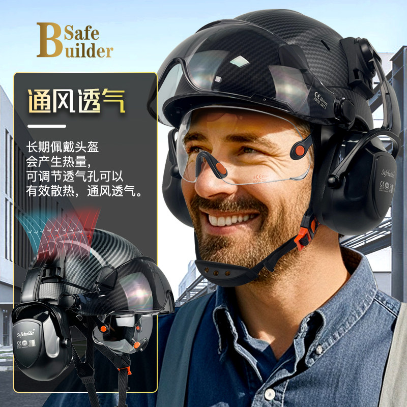美国SAFEBUILDER工业防砸安全帽是一款专为高危工地环境设计的多功能防护头盔,集防砸、防穿刺、抗冲击于一体,符合国际安全标准。配备双护目镜,有效防护飞溅物与强光刺激;集成降噪耳罩,降低施工噪音对听力的损害。采用高强度ABS材质,轻便耐用,内衬透气设计,搭配可调节头围系统,确保长时间佩戴舒适干爽。通风孔科学布局,增强空气流通,减少闷热感。适用于建筑、采矿、制造等多种工业场景,全方位守护头部、眼部与听力安全,是专业工人值得信赖的防护装备。SAFEBUILDER以卓越品质守护每一份安全。