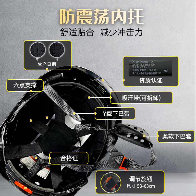 淘ABS护目防砸反光安全帽男工地盔建筑工程透气安全盔新国标定制