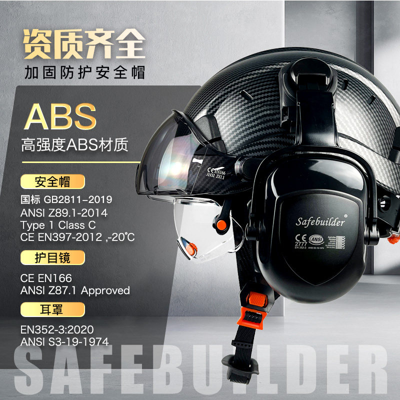 淘宝美国SAFEBUILDER工业防砸安全帽双护目镜耳罩工地头盔透气头盔