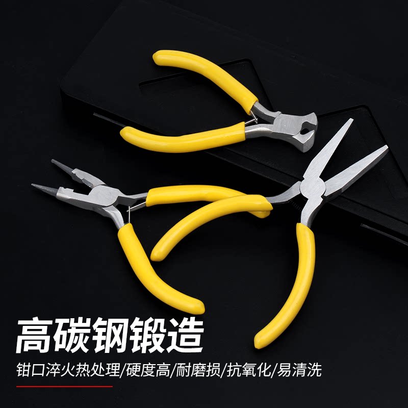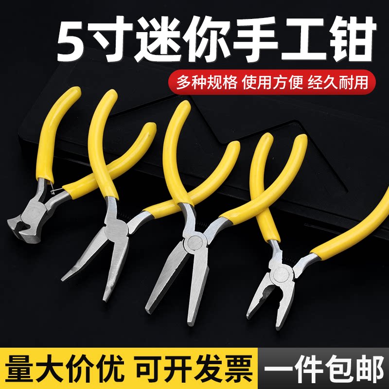 天猫尖嘴钳迷你钳子5寸电工剥线老虎钳手工DIY多功能钢丝钳弯嘴珠宝钳