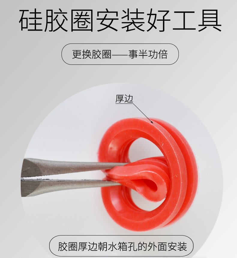 太阳能热水器配件中的硅胶圈和密封圈是确保水箱、管道连接处密封防漏的关键部件,长期使用易老化、变形,需定期更换。配套专用加长尖嘴钳是安装与维修的得力工具,其细长钳头可深入狭小空间,精准夹取或拆卸密封圈,操作便捷省力。该工具采用优质钢材制造,防锈耐用,握把防滑设计提升操作安全性。适用于各类品牌太阳能热水器的维护作业,是维修人员及家庭用户必备的实用工具。正确选用硅胶圈规格并配合专用钳具,能有效延长设备寿命,保障热水系统稳定运行,避免因渗漏造成的能源浪费与安全隐患。