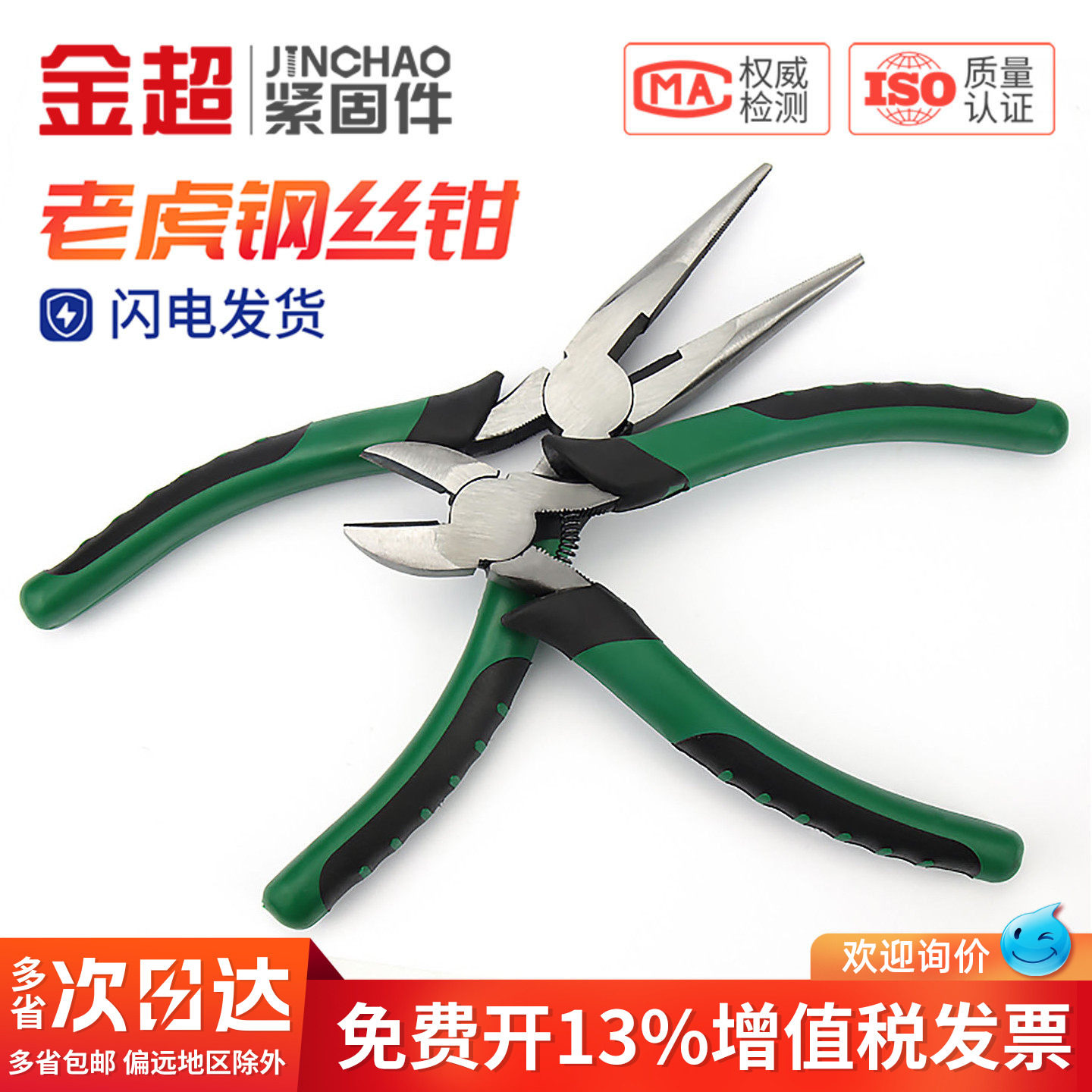 天猫金超老虎钳钳子钢丝钳多功能老虎大全电工尖嘴工业级斜口特种手钳