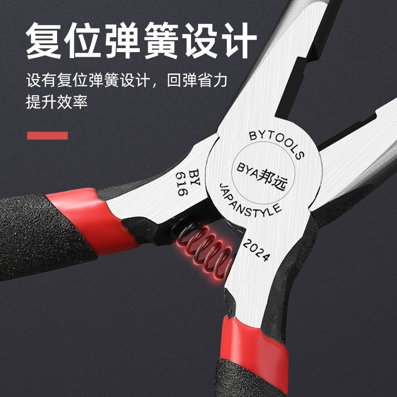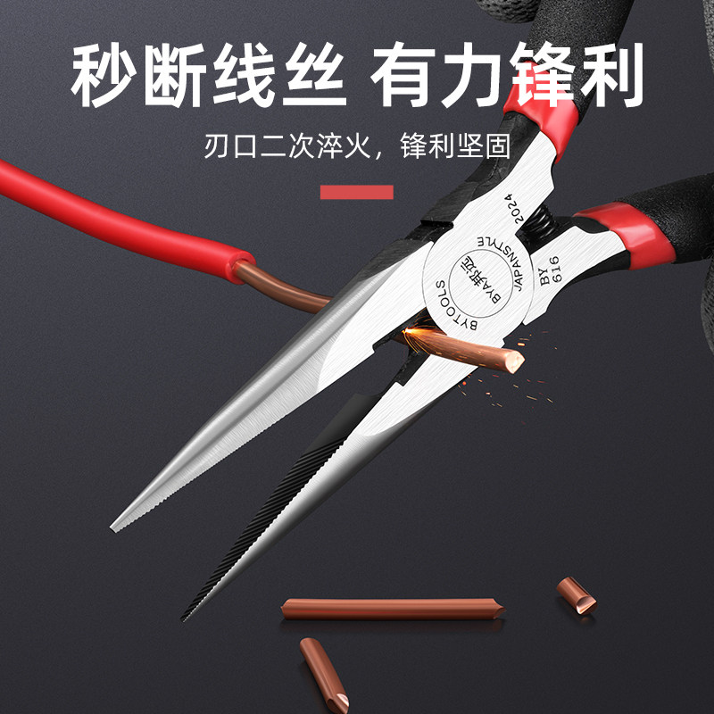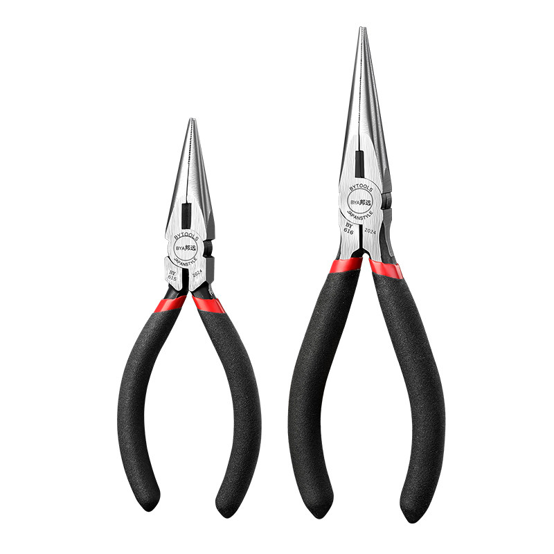 高品质精密尖嘴钳(5寸/6寸,型号BY615)专为精细手工与珠宝制作设计,采用优质高碳钢锻造,硬度高、耐磨性强,久用不变形。钳头经精密研磨,咬合紧密,提供卓越的夹持力与操控精度。提供圆嘴、弯嘴、扁嘴及无牙款式,满足不同造型与夹持需求,尤其适合制作戒指、耳环、项链等微小饰品。迷你尺寸设计,握感舒适,操作灵活,适合长时间精细作业。表面经防锈处理,耐用且易清洁。无论是专业珠宝匠人还是手工爱好者,这款小号尖嘴钳都是不可或缺的高精度工具,助力打造精美细致的作品。