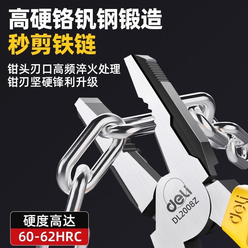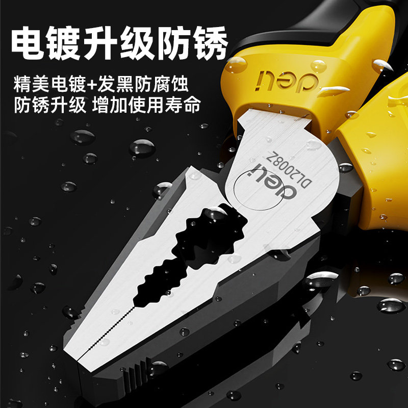天猫得力老虎钳工业级尖嘴钳家用斜口钳高硬度电工专用钢丝钳子多功能