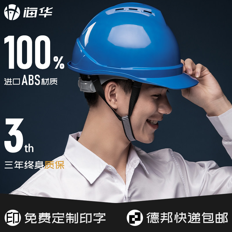 天猫海华安全帽工地国标A8型透气电力劳保领导工地头盔印字logo工地帽