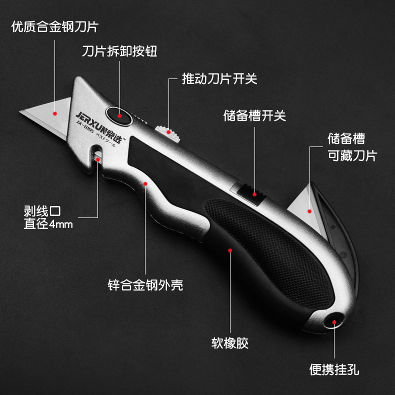 天重型不锈钢折叠美工刀 壁纸刀架 勾刀电工电缆扒皮剥线剥皮专用刀
