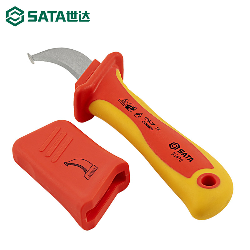 天猫Sata/世达VDE绝缘剥线刀电工专用耐高压直刃弯刃防护式剥皮刀工具