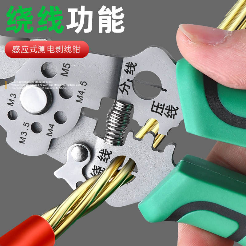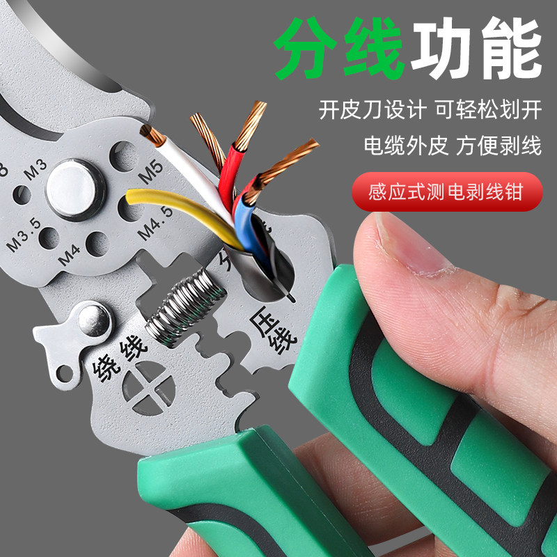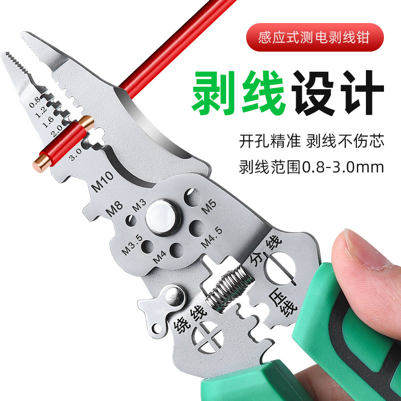 淘宝工业级多功能带测电笔剥线钳电工专用分线器可调节绕线大开口剪切