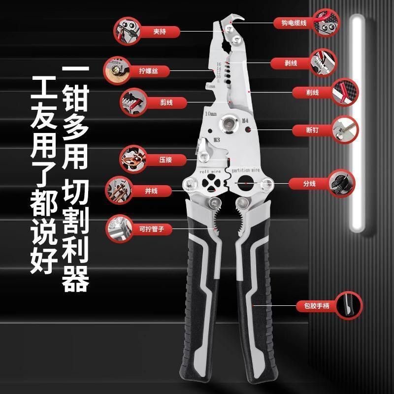 淘工业级多功能带测电笔剥线钳电工专用分线器可调节绕线大开口剪切