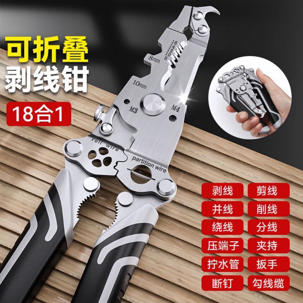 淘宝新款18合1可折叠剥线钳多功能电工钳剪线分线工具