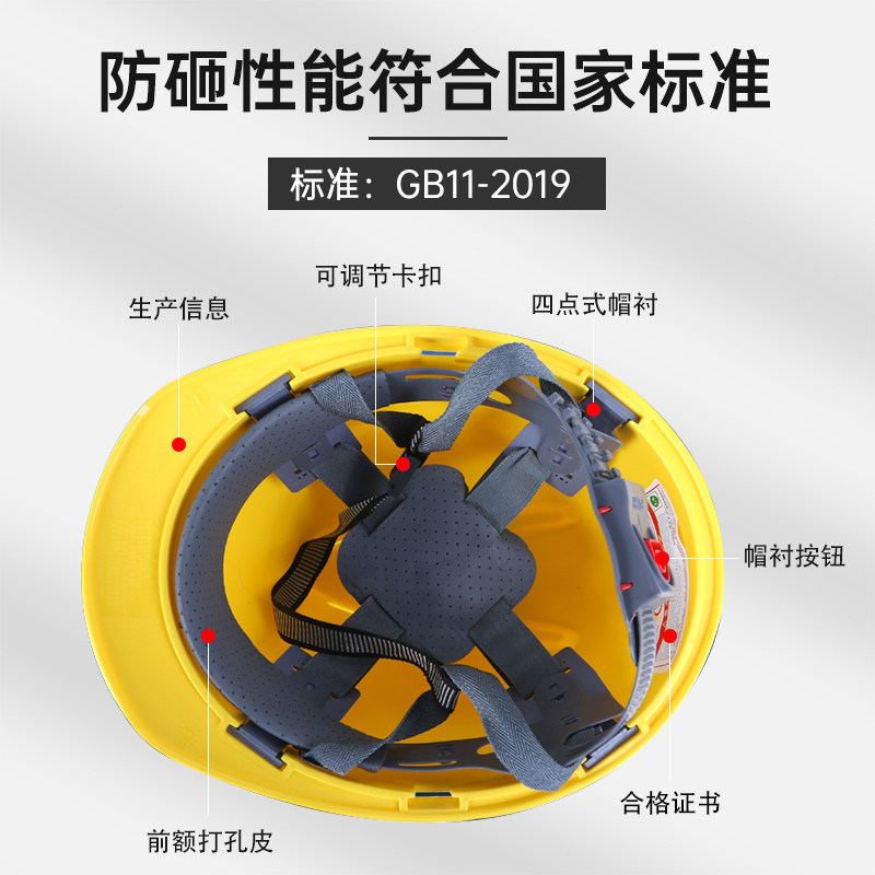 工地安全帽男施工建筑工程防护头帽电工国标透气加厚头盔印字