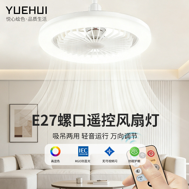天猫风扇灯静音家用带电扇一体e27螺口电风扇灯卧室一体led小型吊灯泡