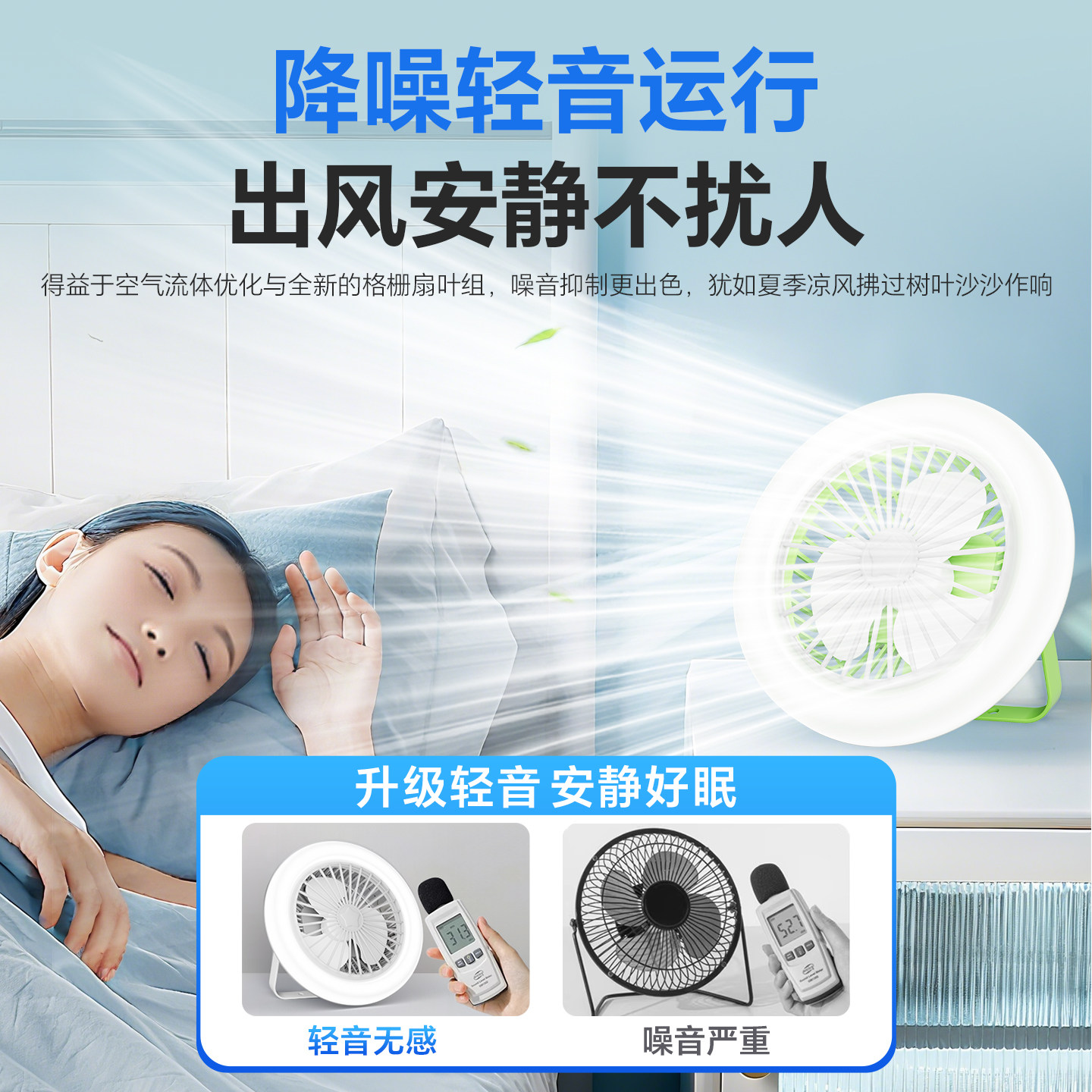 天猫小风扇吊扇宿舍床上悬挂超静音大风力充电风扇USB户外厨房风扇灯