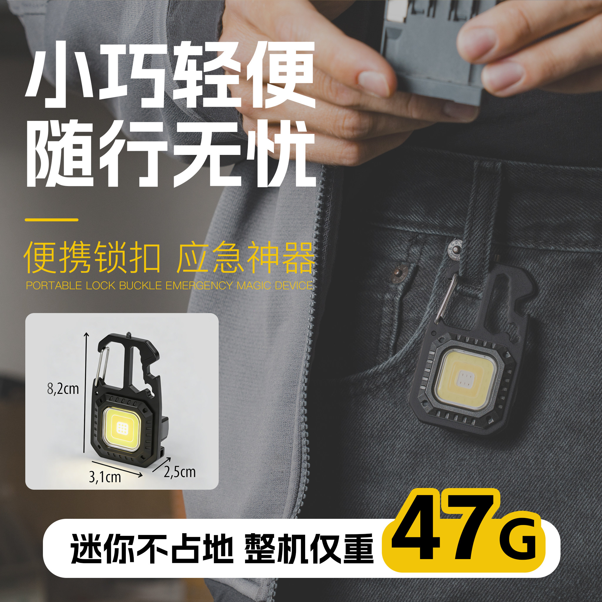 多功能防水便携手电筒腰挂钥匙扣迷你简约应急野外求生钥匙扣