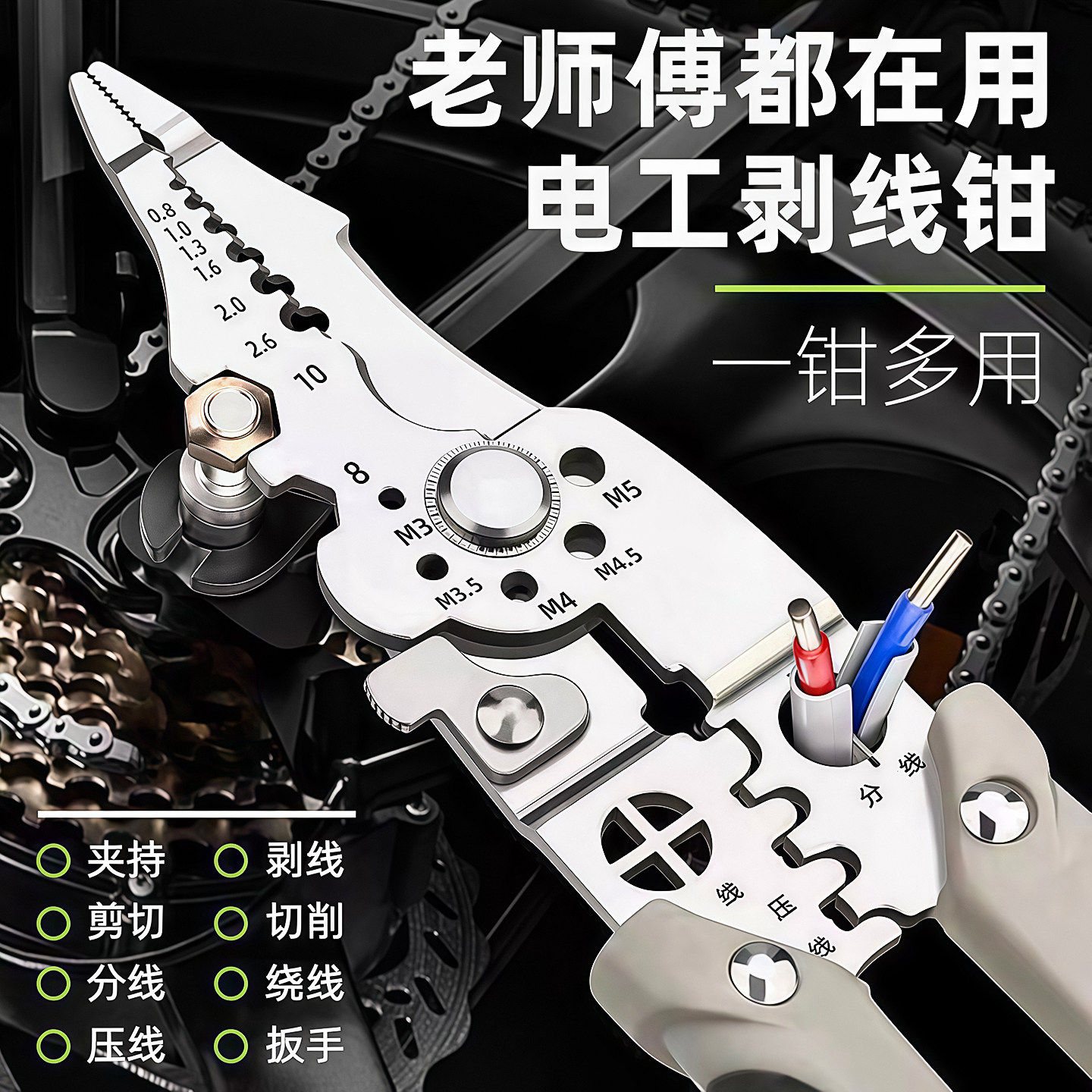 淘工业级多功能带测电笔剥线钳电工专用分线器可调节绕线大开口剪切