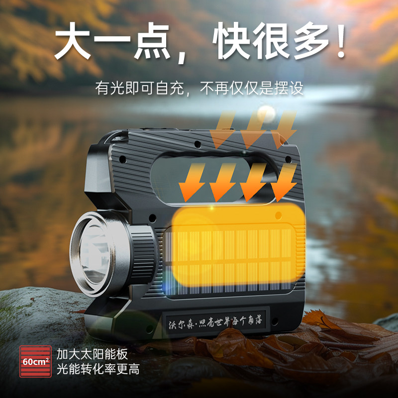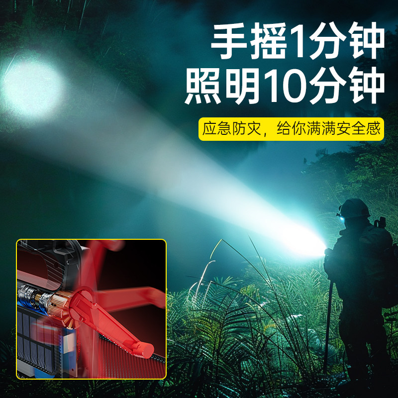 天猫沃尔森应急手摇发电多功能手电筒强光超亮太阳能充电户外照明灯