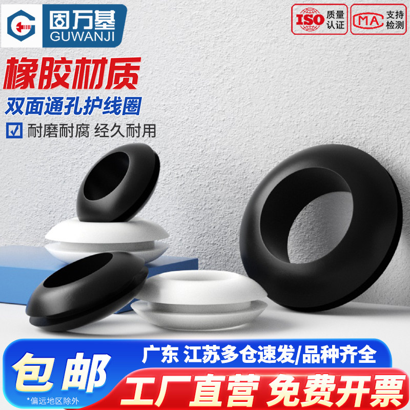 天猫橡胶双面护线圈白黑色圆孔过线圈电线配电箱过孔皮圈穿线保护套