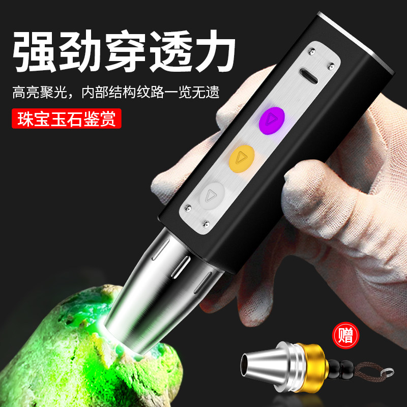 天猫玉石鉴定专用手电强光灯珠宝验钞笔365nm紫光灯鉴别翡翠烟酒电筒