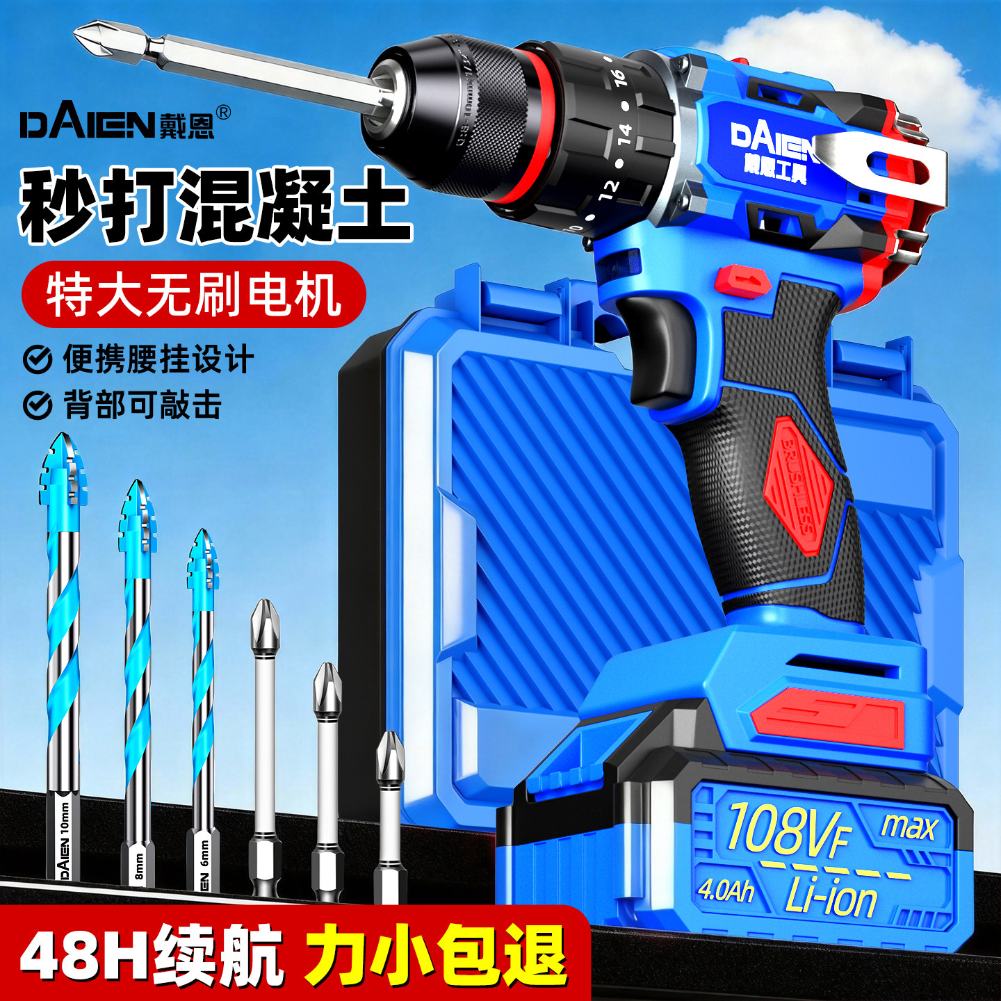 天手电钻家用充电无刷锂电大功率维修冲击钻孔多功能工业电动螺丝刀