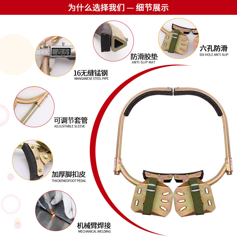 国标加厚电工脚扣攀爬器爬水泥杆防滑电线趴脚踏铁鞋电力电杆脚钩