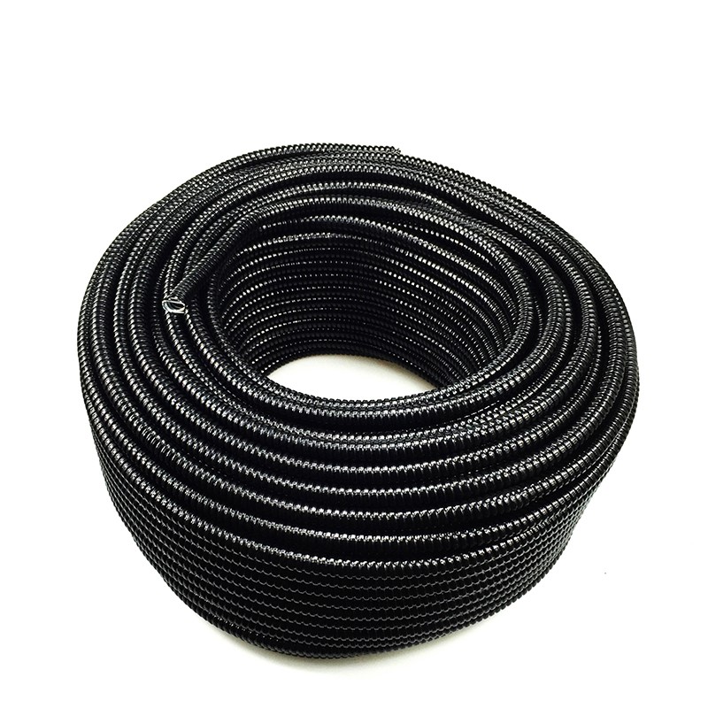 P3型国标包塑金属软管(俗称蛇皮管)是一种柔性电线保护套管,采用优质镀锌钢带为基材,外层包覆阻燃PVC塑料,兼具金属强度与塑料防腐性能。其波纹结构设计增强了柔韧性和抗压能力,适用于复杂布线环境。规格涵盖16、20、25、32、38mm等多种内径,广泛应用于建筑、机械、电力、通信等领域,用于保护电线电缆免受机械损伤、潮湿及化学腐蚀。黑色外观美观耐用,符合国家标准,安装便捷,可弯曲穿线,是工业与民用布线中的理想防护材料。具备优异的防火、防水、防鼠咬性能,确保线路安全稳定运行。