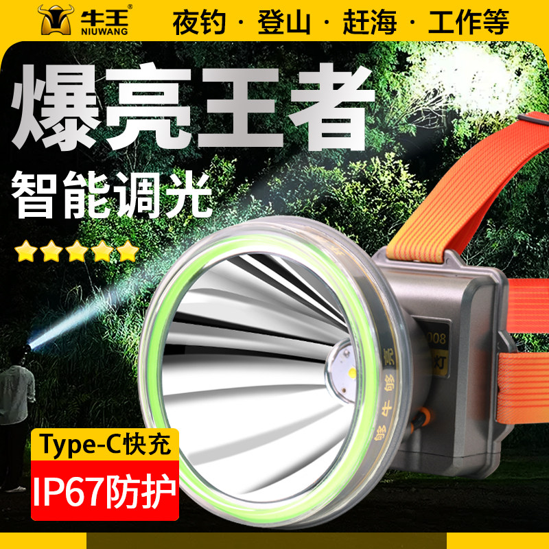 天猫牛王钓鱼头灯强光充电超亮头戴式手电筒超长续航白光黄光夜钓赶海