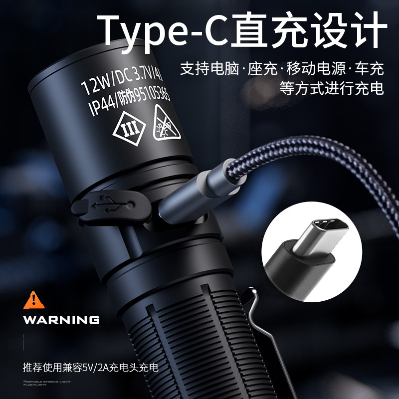 多功能高亮强光手电筒充电便携小型露营户外灯学生宿舍护眼看书