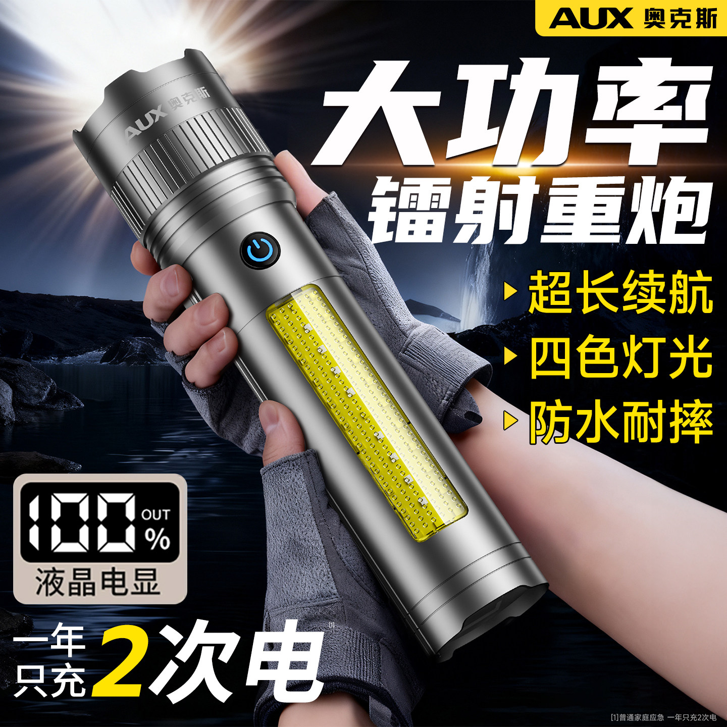 天猫奥克斯银龙手电筒2026新款强光充电超长续航大容量远射超亮大功率