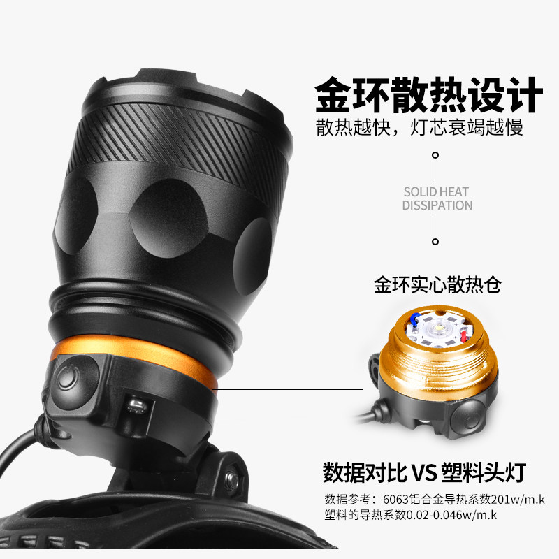 自行车夜骑前灯可充电防水强光手电筒聚焦远射山地车散光灯骑行装