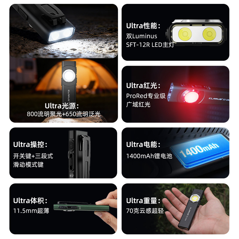 天猫KLARUS凯瑞兹E5Ultra超薄小型便携强光手电筒户外徒步登山EDC手电