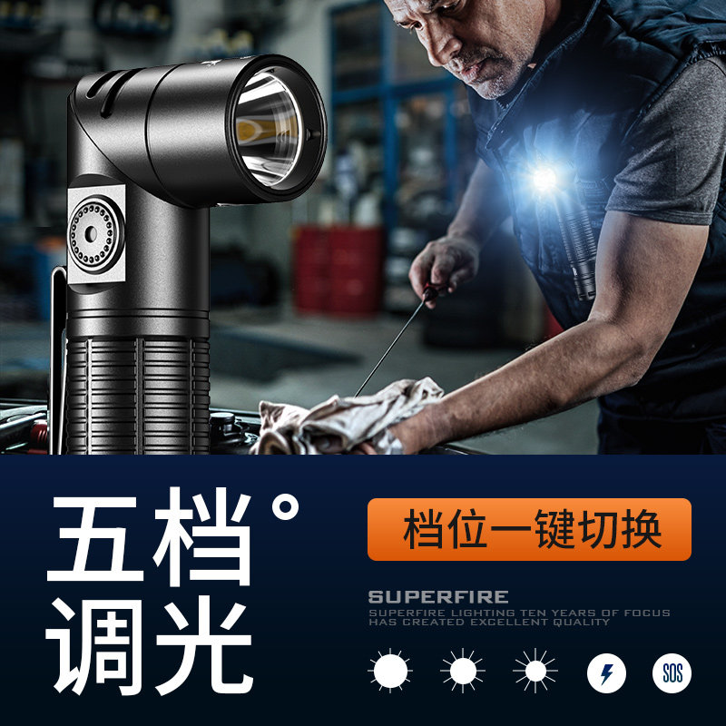 天猫神火G19带磁铁工作灯多功能强磁汽修修车机床维修超亮头灯手电筒