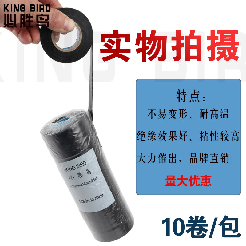 淘宝必胜鸟电工黑胶带胶布 PVC胶布汽车改装线路束绝缘黑胶带超薄超粘