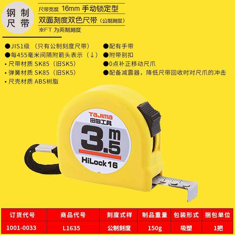 日本田岛(TAJIMA)卷尺是一款高精度钢卷尺,提供3.5米、5.5米、7.5米及10米多种规格,满足不同测量需求。采用优质钢材制造,刻度清晰耐用,双面设计兼顾公制单位,便于快速读数。尺带具备良好抗磨损与抗腐蚀性能,回弹顺畅,定位精准。外壳坚固防震,配备防滑手柄与锁定装置,使用安全便捷。广泛应用于建筑、装修、木工及家庭测量等领域,以卓越的精度与可靠性赢得用户信赖,是专业工匠和DIY爱好者的理想测量工具。