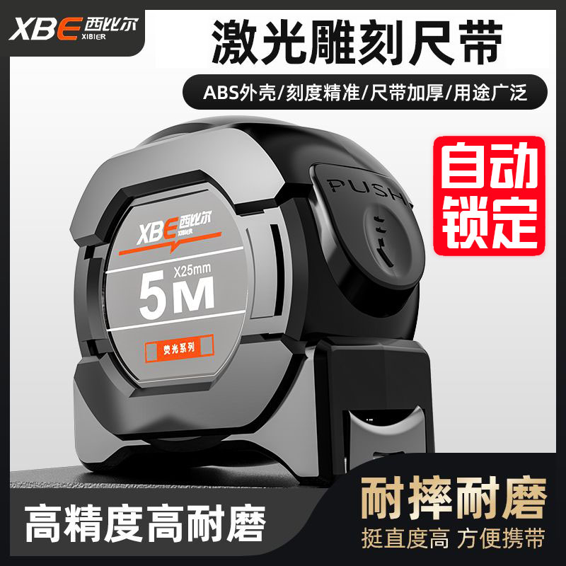 淘宝自锁荧光钢卷尺高精度激光喷码黑金盒尺量具5米加宽家用耐磨米尺