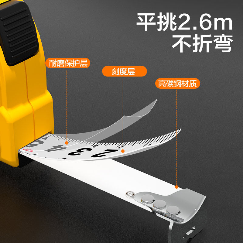 得力5米加厚加硬卷尺,专为家用与专业设计打造,采用高强度合金钢带,加厚加硬工艺确保尺带不易变形、耐磨耐折。3米盒尺设计紧凑便携,5米量程满足多种测量需求,刻度清晰精准,双面标识方便读数。外壳采用防摔ABS材质,抗冲击性强,经久耐用。特别适用于设计师、绘图员及家庭装修等场景,兼顾高精度与实用性。弹簧回卷顺畅,卡扣定位稳固,操作便捷。无论是木工、建筑还是日常测量,这款防摔测量尺都能提供可靠支持,是工具箱中的得力助手。