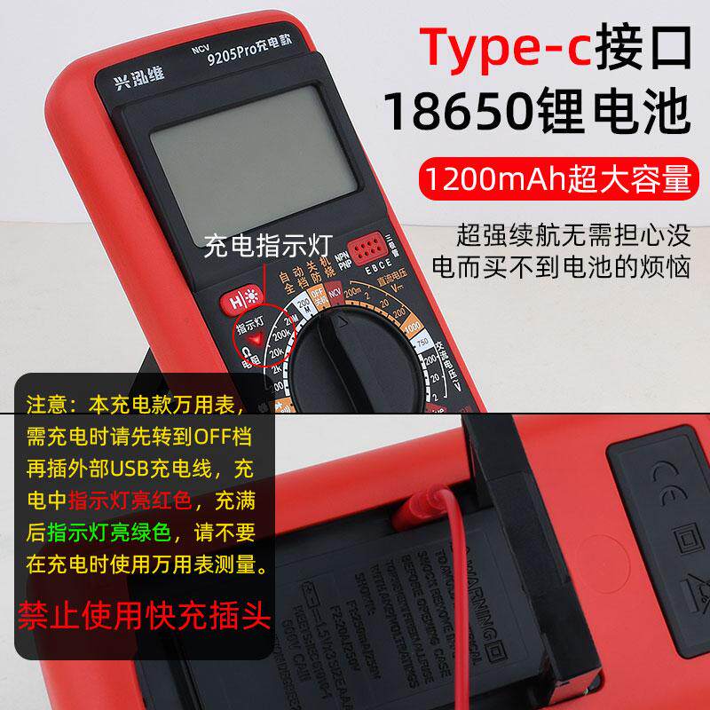 淘宝兴泓维新款9205Pro可充电数字万用表高精度智能防烧万用表电工用